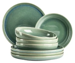 Mäser 931876 Tafelservice Lumaca Für 6 Personen, Steinzeug, Olivegrün (1 Set, 18-teilig)
