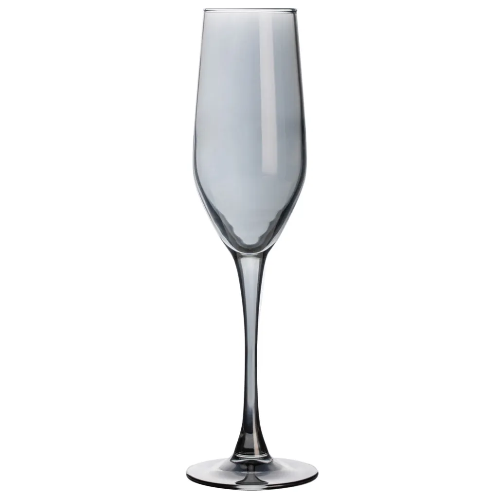 * 6 elegante, transparente Champagnergläser aus Glas 160 ml mit einem schillernden, grafiten Farbton bedeckt