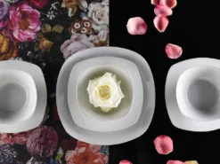 Die superweisse Ausführung aus hochwertiger Qualitätsfertigung ist der Mittelpunkt einer jeden Tafel! Die trendige abgerundete, quadratische Form unterstreicht noch den zeitlos modernen Charakter dieses vielseitig einsetzbaren Geschirrs.