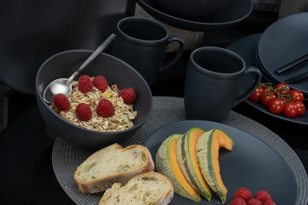 Die Farbe BLACK MATT verleiht diesem Geschirr die seidenmatte Haptik und die angesagte Matt Optik.