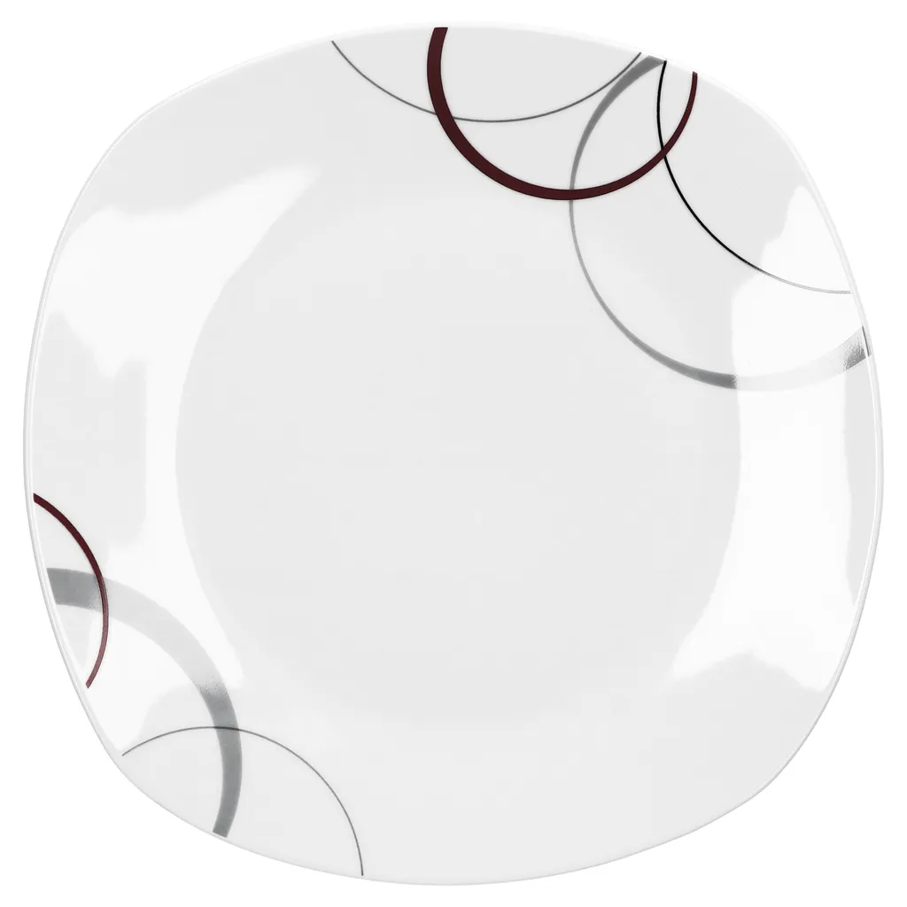 Unterschiedlich große und breite Kreise in den Farben grau und dunkelrot. Der Rest des Service ist