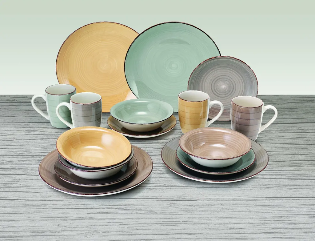 Das Kombiservice besteht aus je 4 Kaffeebechern, Desserttellern, Speisetellern und Schalen. In harmonischen Naturtönen setzt das Geschirr-Set Ihr Gericht schön in Szene. Es wurde aus Steingut gefertigt und kann problemlos in die Spülmaschine sowie in die Mikrowelle gegeben werden.