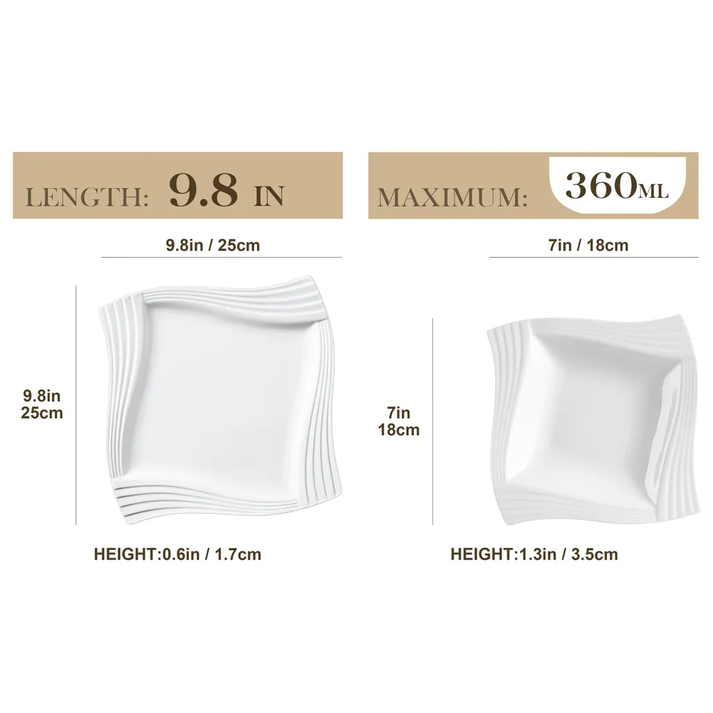 - EINHALTUNG DER TRADITIONELLEN HÖCHSTEN HANDWERKSKUNST | Hochwertige Porzellanselektion, einzigartige und künstlerische Verglasungstechnologie sowie ein präzise kontrollierter Temperaturbrand sorgen dafür, dass jeder Teller leicht und dünn aussieht und im tatsächlichen Gebrauch langlebig ist. Beinhaltet 12 x Speiseteller [25 x 25 x 1,7 cm] und 12 x Suppenteller [18 x 18 x 3,5 cm].