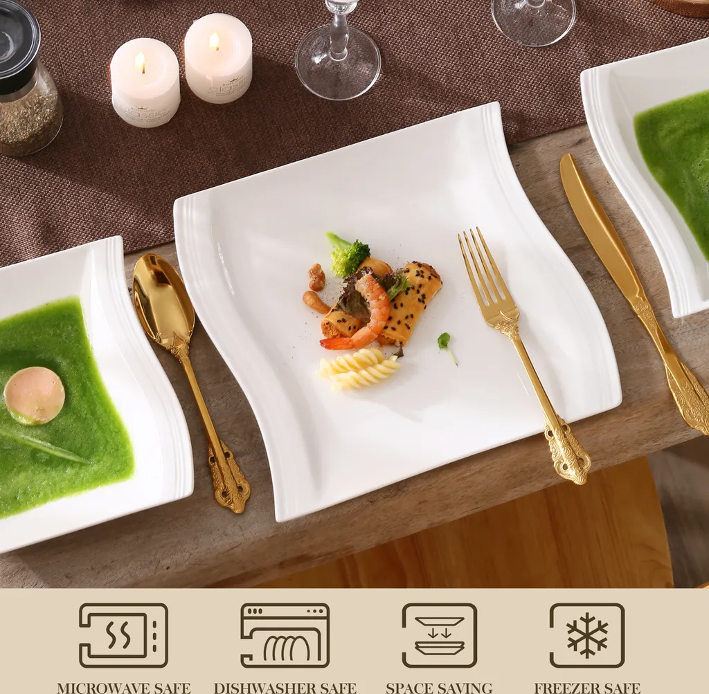 - PFLEGELEICHT | Die gesamte Serie ist sowohl spülmaschinenfest als auch mikrowellengeeignet und dadurch äußerst pflegeleicht. HINWEIS: – Bitte stellen Sie sicher, dass Ihre Spülmaschine groß genug ist, um das gesamte Geschirr aufzunehmen; – Handgefertige Porzellanprodukte, sind kleine Lufteinschlüsse, Unebenheiten möglich, und auch können kleine Abweichungen in Form, Größe und Gewicht vorkommen, bitte denken Sie darüber vor dem Kauf nach.