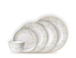Das Set ist für bis zu 4 Personen und besteht aus 4 Obertassen 220 ml , 4 Untertassen Ø 16 cm , 4 Suppenteller Ø 21.5 cm , 4 Frühstückstellern Ø 20.5 cm und 4 Speisetellern Ø 26.5 cm.