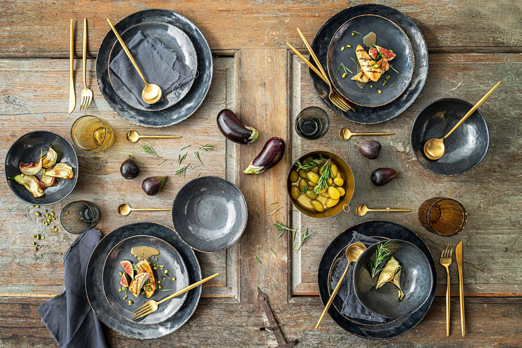 Das Teller Set Tombey der Marke Sänger besticht durch den Farbmix aus Blau und Grau geprägter Maserung in Verbindung mit der unregelmäßig schimmernden Glasur. Beides zusammen erzeugt eine tolle Metalloptik. Dadurch können Sie sich sicher sein, dass Sie zu jedem Anlass stilvoll servieren werden, denn hier haben Sie das richtige Service gefunden.