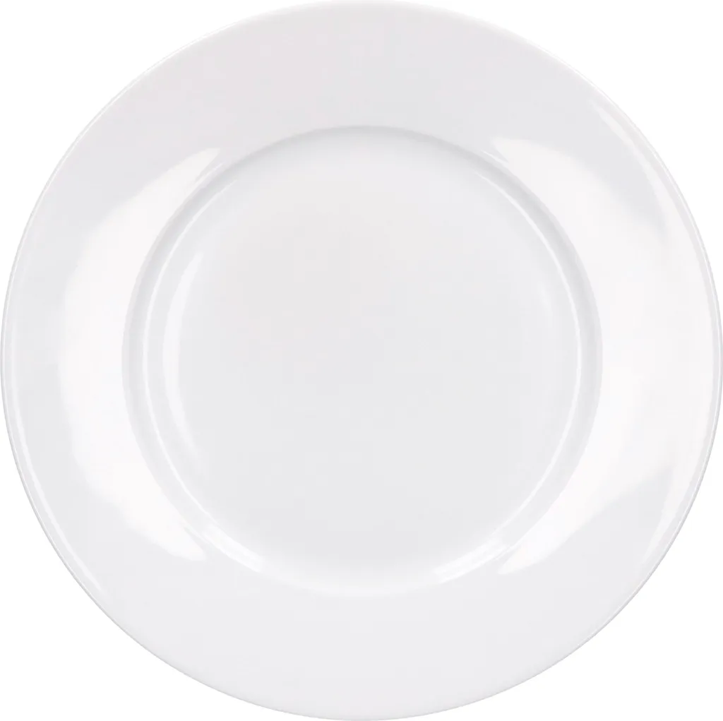 Der flache Teller mit einem Durchmesser von Ø 270 mm macht sich am kalten oder warmen Buffet auch als Servierplatte besonders nützlich. Servieren Sie Tortenhappen oder Gebäck am Tisch oder stellen Sie den großen Teller für den Hauptgang bereit, dessen Spiegel Ø 160 mm misst. Gewicht: 690 g.