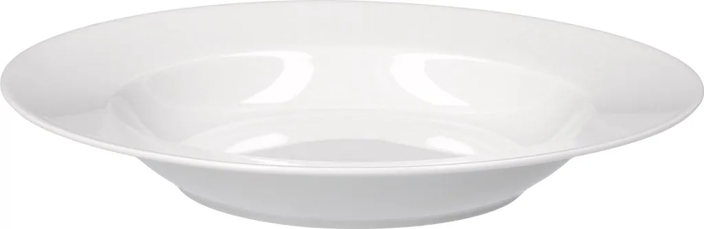 Der tiefe Suppenteller kann perfekt als Grundlage für cremige und flüssige Speisen genutzt werden. Er misst insgesamt Ø 230 mm im Durchmesser und hat einen Tellerspiegel von Ø 110 mm. Gewicht: 500 g.